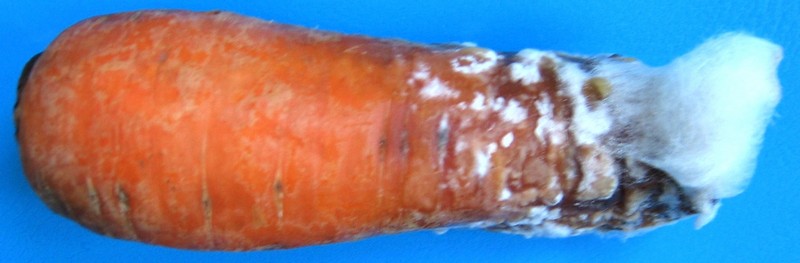 Біла гнилизна, викликана грибом Sclerotinia sclerotiorum , вражає коренеплоди моркви. Симптоми: – Поява на коренеплодах білого ватного нальоту. – Надалі тканини стають водянистими та м'якими.